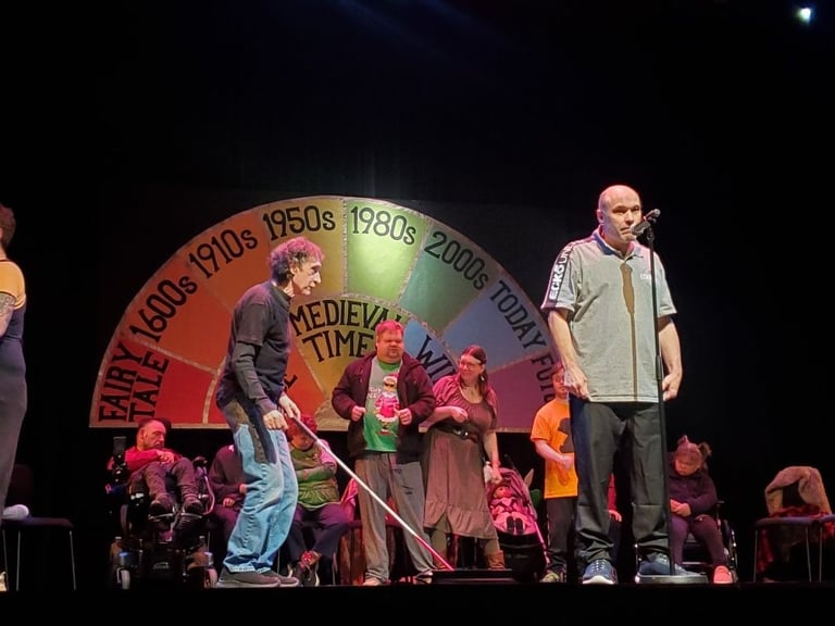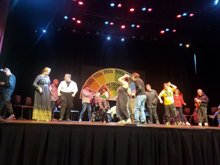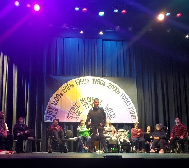 Our Fall 2024 show at the Orillia Opera House, Lightfoot Auditorium. The troupe journeyed through time riding a giant time machine with stops at their favorite time periods...the Stone Age, Medieval times, the 50s, 80s...in each weaving nostalgic and hilarious stories from our collective memory.